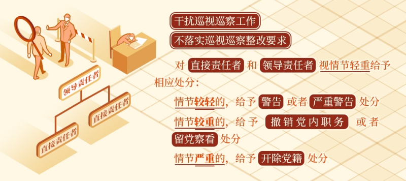 《中國共產(chǎn)黨紀律處分條例》規(guī)定,干擾巡視巡察工作或者不落實巡視巡察整改要求,屬于違反政治紀律的行為,對直接責任者和領導責任者,視情節(jié)輕重給予相應處分。情節(jié)較輕的,給予警告或者嚴重警告處分;情節(jié)較重的,給予撤銷黨內(nèi)職務或者留黨察看處分;情節(jié)嚴重的,給予開除黨籍處分?! ?/span>