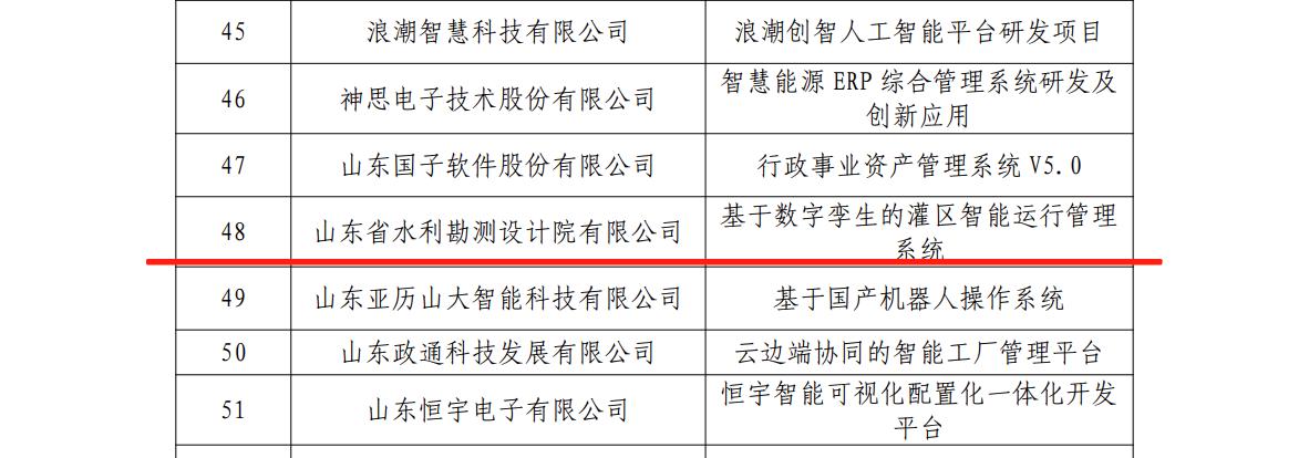 近日,山東省水利勘測設(shè)計(jì)院有限公司(以下簡稱山東水設(shè))自主研發(fā)的“基于數(shù)字孿生的灌區(qū)智能運(yùn)行管理系統(tǒng)”成功入選“第五批山東省軟件產(chǎn)業(yè)高質(zhì)量發(fā)展重點(diǎn)項(xiàng)目”和“第九批山東省首版次高端軟件產(chǎn)品”,彰顯了公司在水利數(shù)字化領(lǐng)域的技術(shù)實(shí)力。