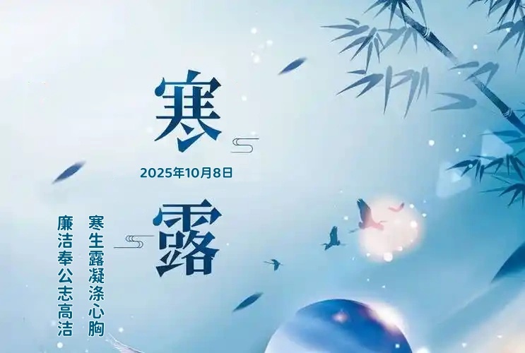 今日寒露,寒來露生,草木零落,晚秋意濃。俗語有云:“寒露寒露,遍地冷露?!焙豆?jié)氣是天氣轉(zhuǎn)涼的象征,露氣從潔白晶瑩轉(zhuǎn)為寒冷欲凝,標(biāo)志著天氣由涼爽轉(zhuǎn)向寒冷。