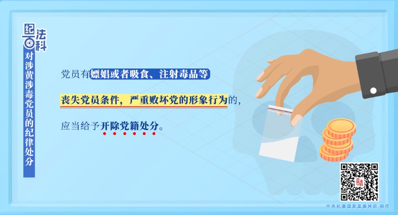 《中國(guó)共產(chǎn)黨紀(jì)律處分條例》第三十條第三款規(guī)定,黨員有嫖娼或者吸食、注射毒品等喪失黨員條件,嚴(yán)重?cái)狞h的形象行為的,應(yīng)當(dāng)給予開除黨籍處分。